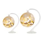Domov Sklo Vianočné maľované sklo Guľa na stojane – Zlatá