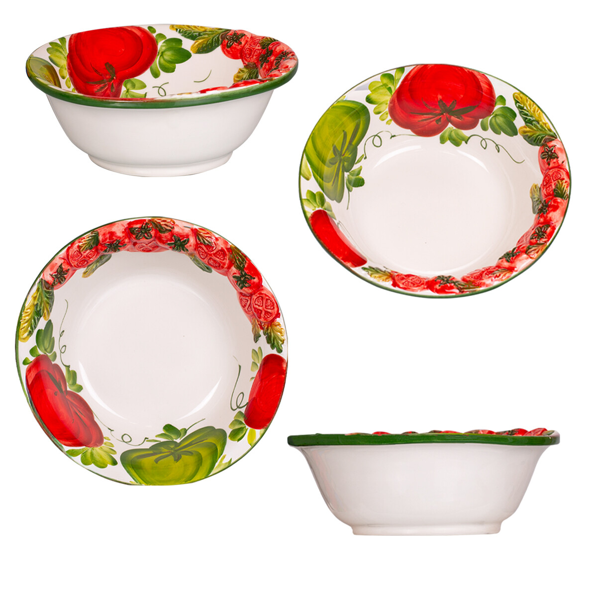 Hagesa – Táto hlboká keramická misa s výrazným motívom šťavnatých paradajok prinesie do vášho stola dotyk pravej talianskej vášne. Ručne maľovaný dizajn v žiarivých farbách dodá servírovaniu jedinečný šarm a eleganciu. Ideálna na cestoviny, polievky či šaláty, no zároveň krásna aj ako dekorácia. Misa, ktorá spája praktickosť s umeleckým spracovaním a prenesie vás priamo do srdca talianskej kuchyne.