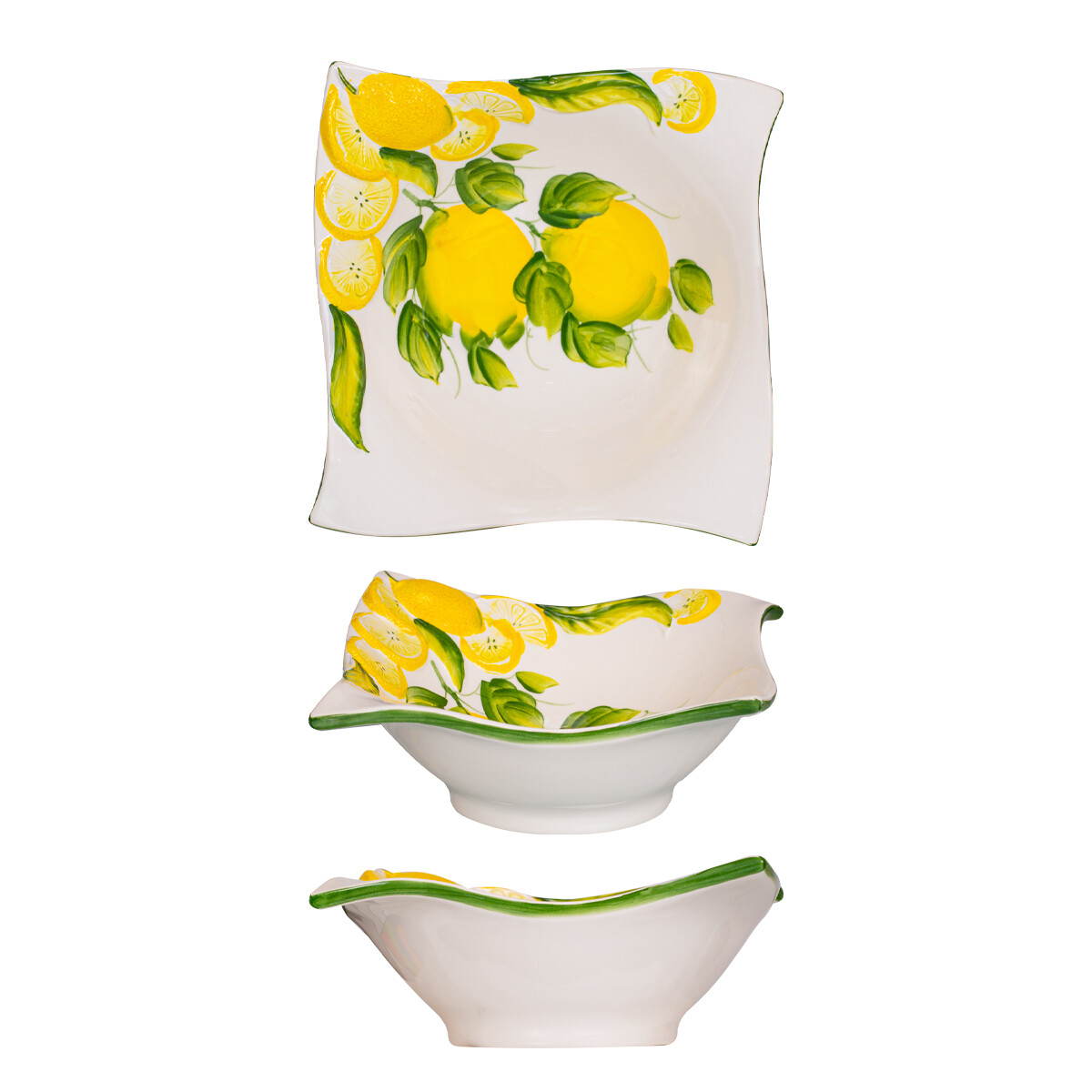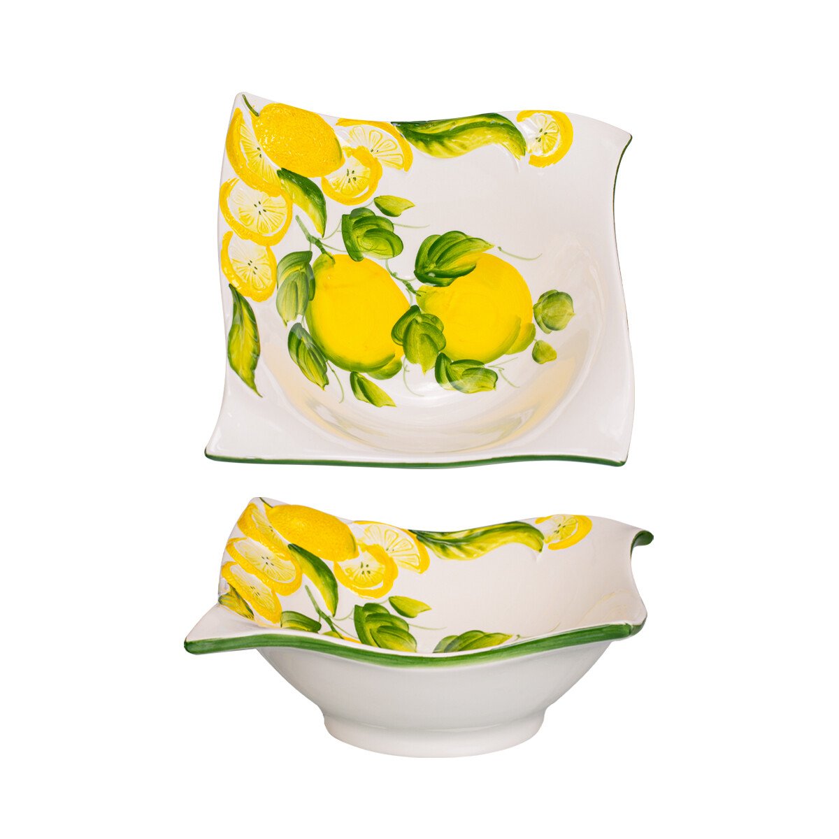 Podnos – keramické podnosy rôznych tvarov sú zdobené talianskymi motívmi, ktoré prinášajú farebnú a živú atmosféru priamo na váš stôl. Každý podnos je ručne maľovaný a glazovaný, čím sa zachovávajú intenzívne farby a trvanlivosť. Motívy zahŕňajú žiarivé citróny, šťavnaté paradajky, rôzne druhy cestovín, syr, olivy, kvety a huby, ktoré spolu vytvárajú autentický taliansky štýl. Tieto podnosy sú ideálne na servírovanie jedál alebo ako dekoratívne kúsky, ktoré prinesú do vášho domova kúsok Stredomoria.