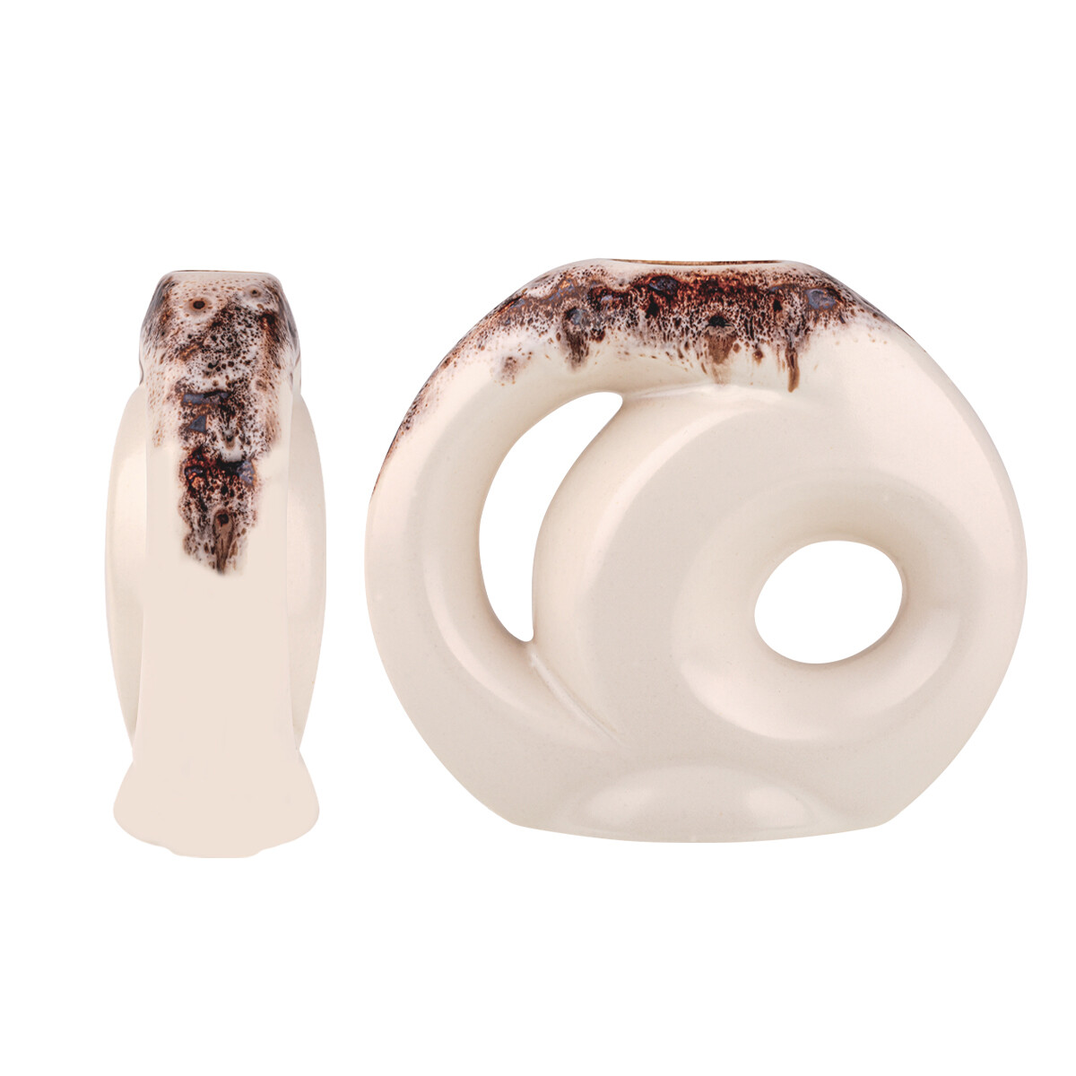 Solaris - moderná ploská kruhová váza s krémovo-hnedou glazúrou 15,00€