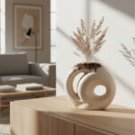 Tvar, dizajn a využitie Váza Orbita je oslavou organickej geometrie, ktorá definovala najodvážnejšie interiérové trendy 80. rokov a dnes prežíva svoj veľký návrat. Jej netradičná konštrukcia s dvoma otvormi umožňuje vytvárať kreatívne kvetinové aranžmány alebo nechať vyniknúť samotnú architektúru vázy. Vďaka svojej stabilite a špecifickému profilu je skvelou voľbou na konferenčné stolíky, nízke skrinky alebo ako dominantný prvok v otvorenej polici. Je to kúsok, ktorý dokáže zjemniť strohé línie a dodať domovu moderný ráz.