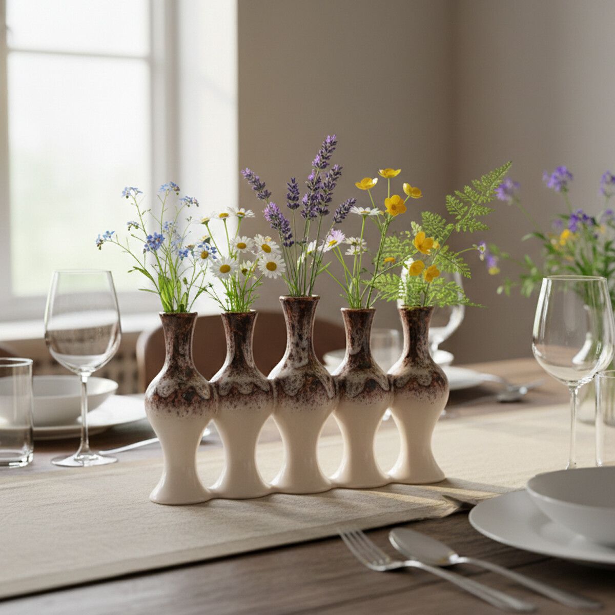 Domov Keramika Dekoračná keramika Vázy Pentola – originálny soliter z 5 vázičiek v hnedo-krémovom štýle