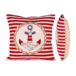 Pluzo Kotva Lodná – Urobte si pohodlie v morskom štýle s naším malým vankúšom s gobelínu, na ktorom dominuje námorný motív lodnej kotvy. Výrazné červeno-ružové pásy s obrázkom kotvy tvoria centrálny dizajn tejto návliečky. Na vankúši sa tento námorný motív vynikajúco uplatňuje. Tento vankúš je nielen pohodlným doplnkom, ale aj štýlovým detailom, ktorý pridáva do vášho domova nádych námorného šarmu a elegancie.