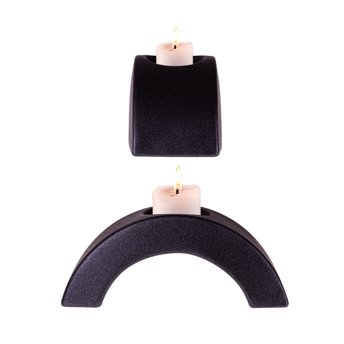 Domov Keramika Dekoračná keramika Svietniky Pontis – Moderný oblúkový svietnik s grafitovým pieskovým reliéfom