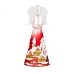 Domov Sklo Vianočné maľované sklo Rea – Anjel veľký červený s miskou na sviecku v rukách – zimná krajina