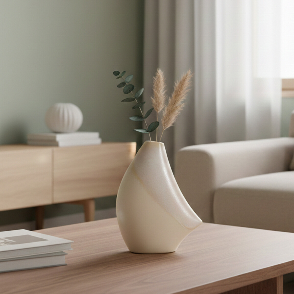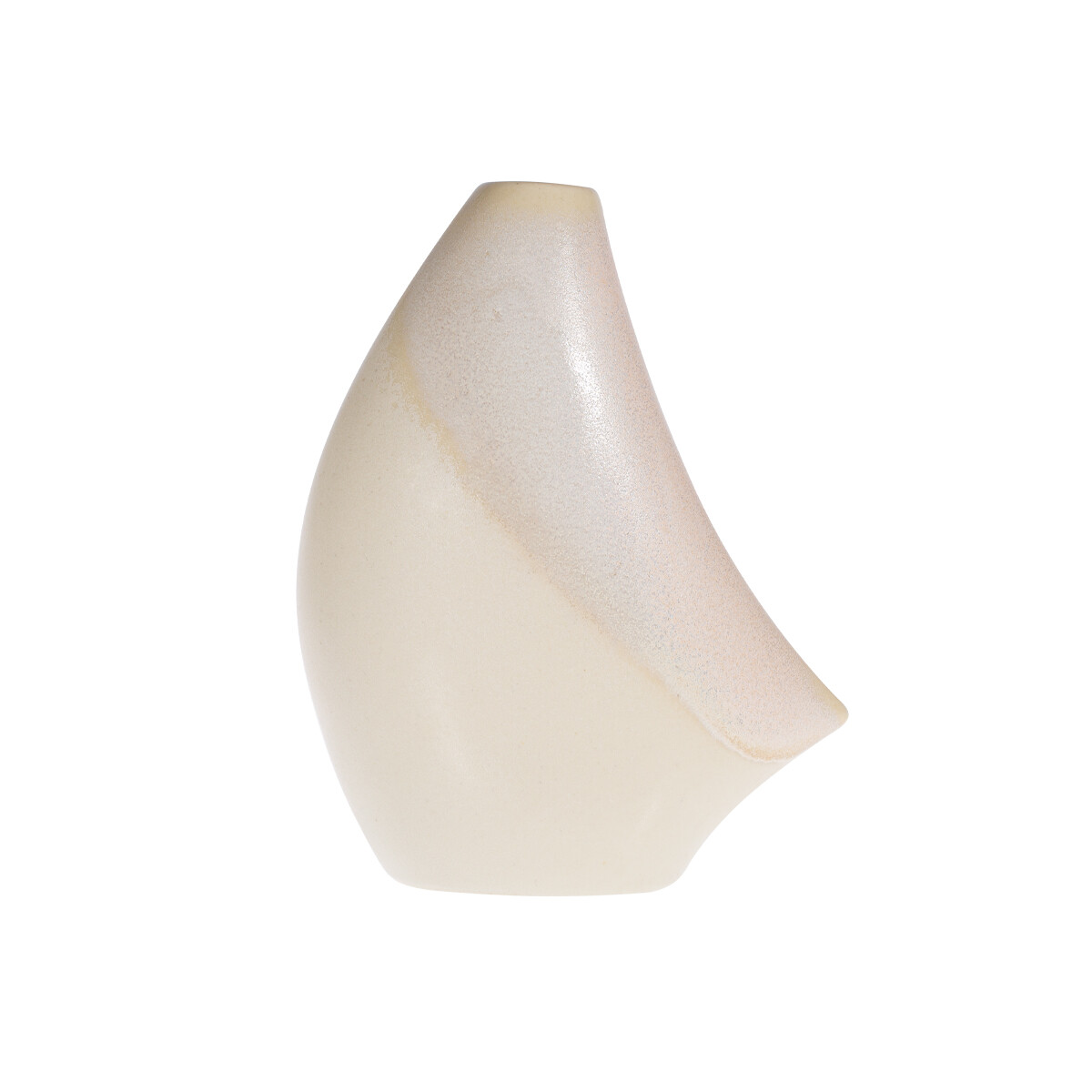 Telone – prineste do svojho interiéru závan ľahkosti a umeleckej slobody s vázou Telone. Jej jedinečný, nepravidelne trojuholníkový tvar evokuje napnutú plachtu na plachetnici a okamžite pritiahne pohľad. Pieskovo-krémový odtieň v kombinácii s unikátnou glazúrou dodáva váze jemnosť a pocit harmónie. Telone nie je len váza, je to sochársky objekt, ktorý vnesie do vášho domova atmosféru pohody a vkusný minimalistický šarm.
