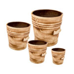 Verebo – Vedro kvetináč – Oživte svoje exteriérové priestory s touto štýlovou sadou 4 keramických vedierok vo výnimočnej prírodnej hnedej farbe. Ich jemný dizajn a neutrálna farba dodávajú autentický dotyk do vášho exteriéru. Tieto multifunkčné vedierka, vhodné na balkóny, terasy aj do záhrady, poslúžia ako nádherné kvetináče alebo nádoby na sadenie kvetov. Vyrobené z odolnej keramiky, zabezpečujú dlhotrvajúcu krásu a odolnosť voči počasiu, čím prispievajú k pôvabu vášho záhradného rajčeka.